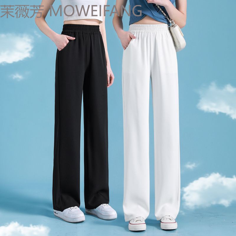雪纺阔腿裤女高腰垂感夏季薄款冰丝西装休闲裤宽松白色拖地直筒裤