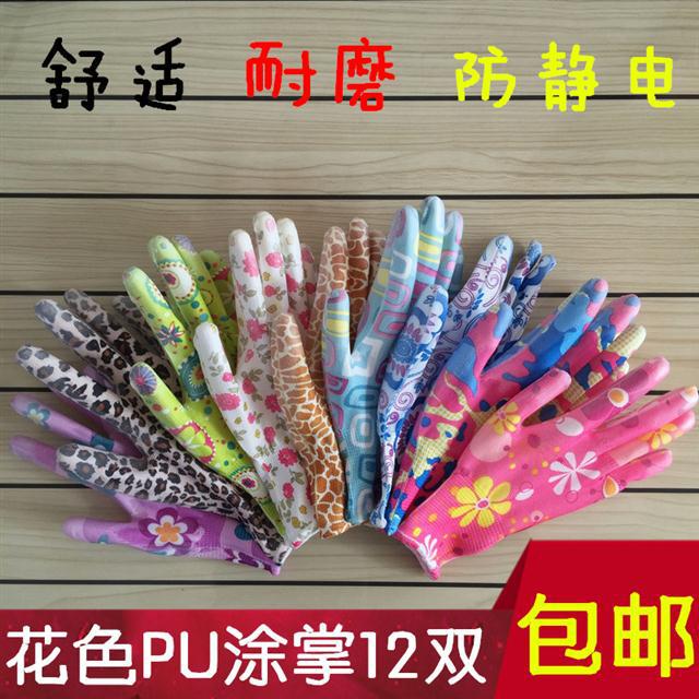 【12双包邮】薄尼龙印花手套花色涂掌浸胶手套防滑涂胶劳保手套