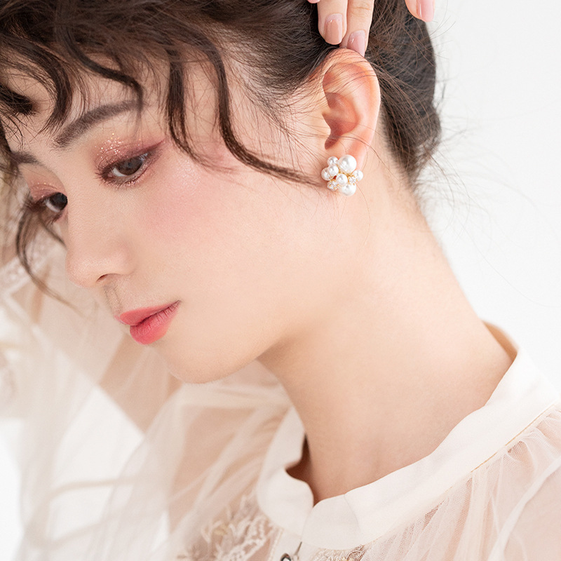 珍珠耳钉花朵耳环 欧美时尚925纯银针饰品高级感耳夹 无耳洞耳饰