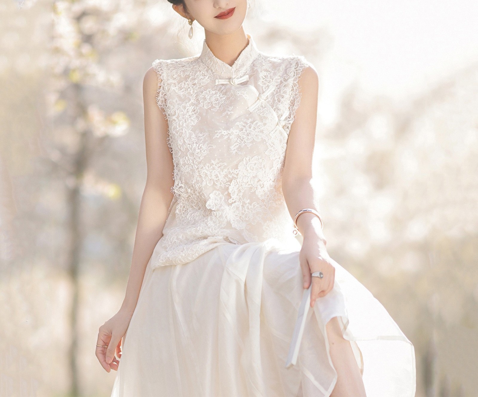 夏季女新中式国风盘扣蕾丝上衣高端精致设计感气质半身裙两件套装