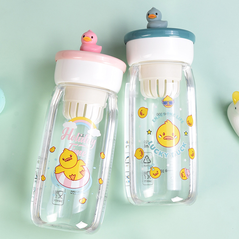 彩虹鸭便携塑料杯带茶隔男女情侣太空杯子夏季学生运动水杯批发