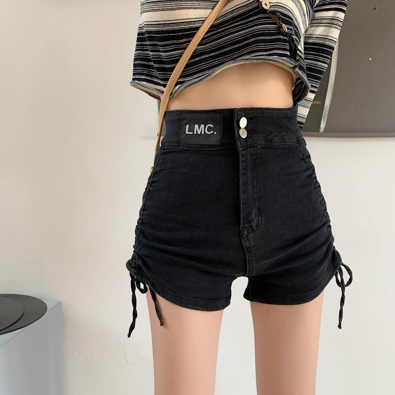 2023新款辣妹高腰牛仔短裤女夏抽绳设计感显瘦a字绑带包臀热裤潮