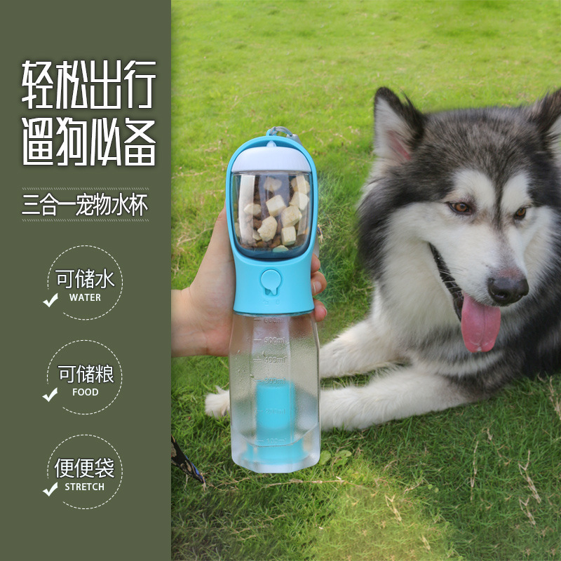 新款三合一宠物狗狗随行杯便携饮水狗粮垃圾袋一体多功能水杯水壶