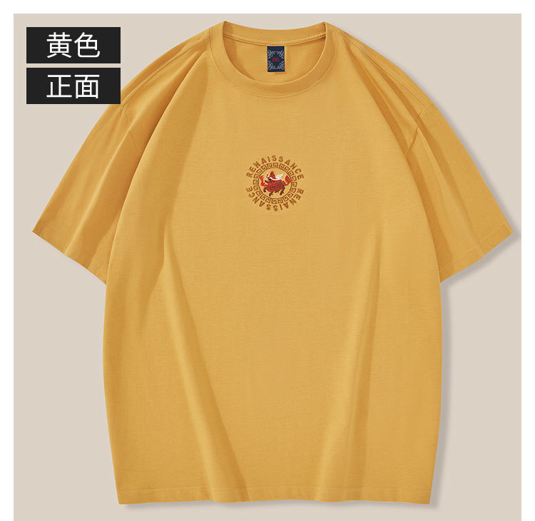 2023春夏新款短袖t恤男士国潮麒麟刺绣男装纯棉圆领青年夏季潮牌