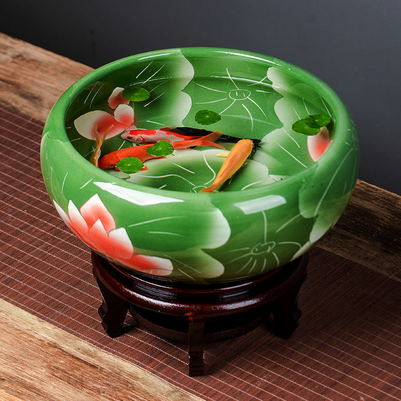 景德镇陶瓷鱼缸大号青花手绘金鱼缸碗莲缸乌龟缸鱼盆家居装饰摆件