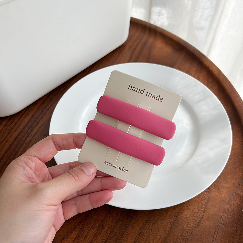 粉嫩少女玫红色皮质BB发夹PU一字夹碎发夹边夹网红甜美韩国发饰品