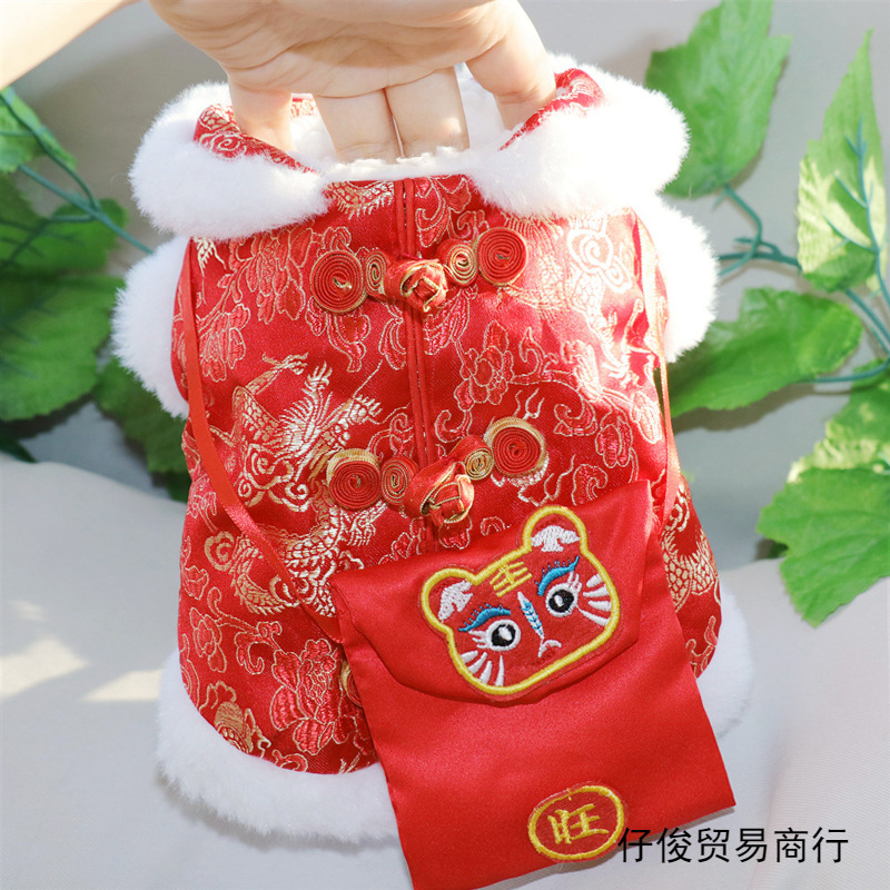 盘扣唐装小狗狗棉衣服新年喜庆冬季泰迪比熊博美猫咪宠物过年冬天