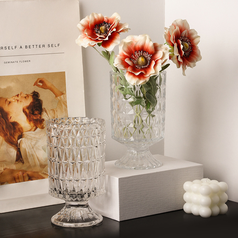 花瓶轻奢加厚高颜值ins风玻璃花瓶客厅桌面插玫瑰富贵竹透明摆件