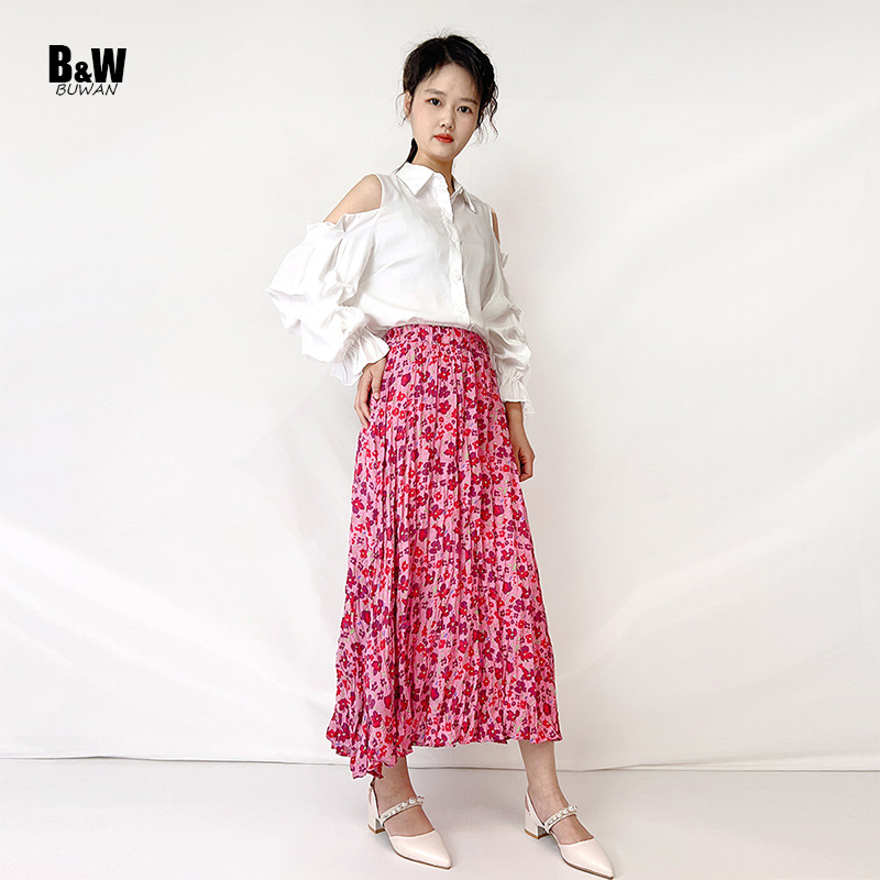 大版型碎花半身裙女2023春夏新款田园风褶皱长裙小清新垂感百褶裙