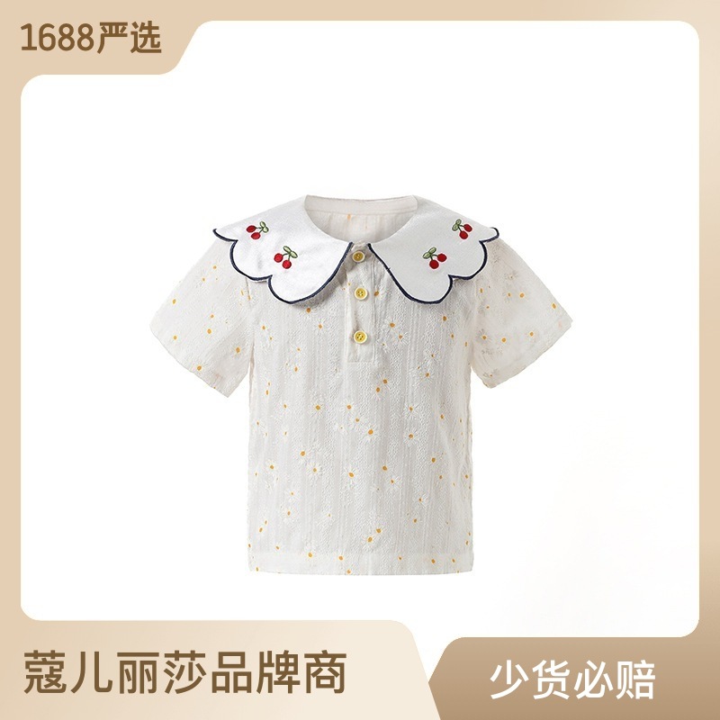 娃娃领刺绣樱桃夏季童装原创女童T恤纯棉短袖儿童服装一件代发