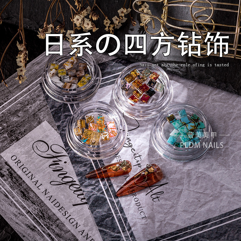 日系新款美甲混合四方钻饰指甲树脂装饰品超有范美甲小饰品