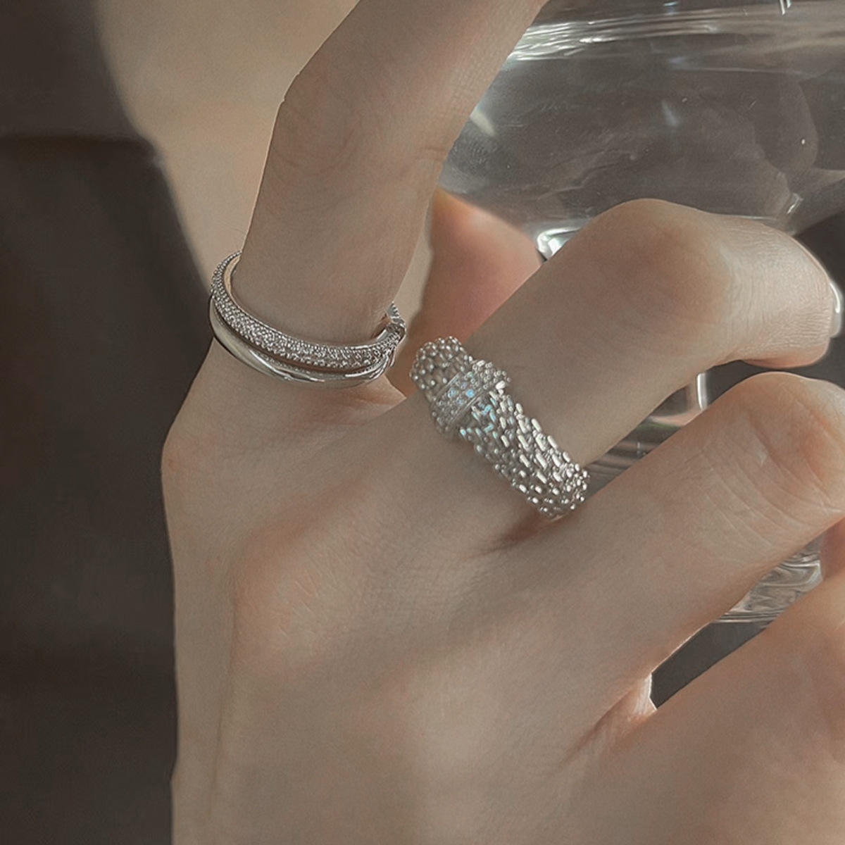 原创小众设计轻奢精致锆石戒指女时尚个性复古双层高级感指环套装