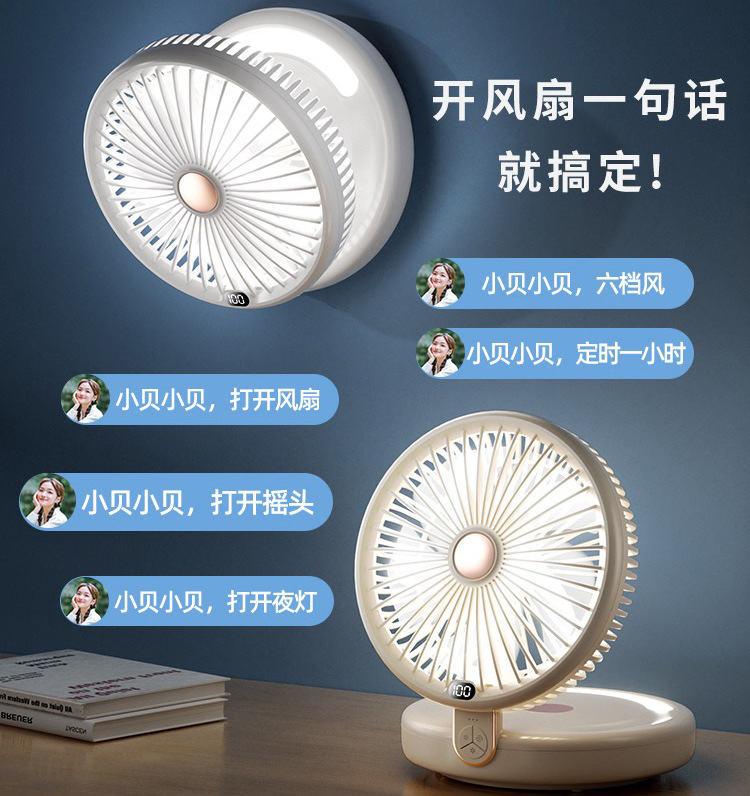 新款数显折叠风扇 宿舍家用语音风扇USB充电挂壁风扇户外桌面风扇