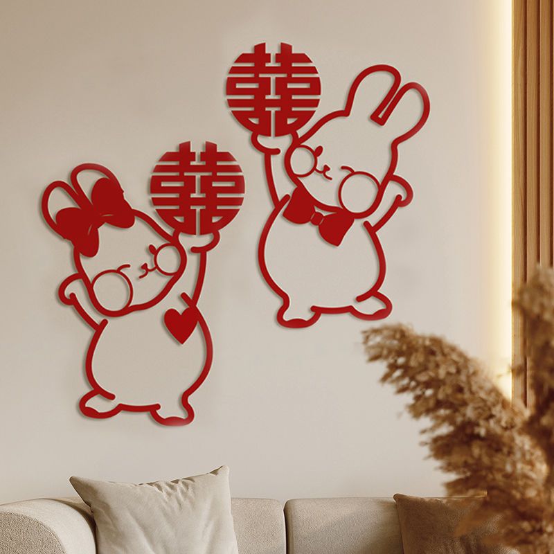 结婚卡通人物无纺布喜字贴婚礼卧室婚房布置套装装饰窗户贴门贴