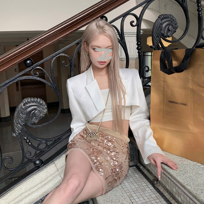 樊樊早安2023新款缎面西装女短款法式正肩休闲温柔气质高级感上衣