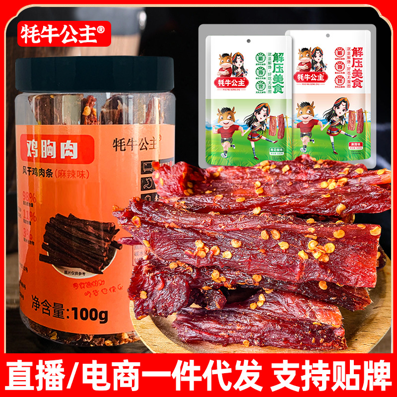 鸡胸肉干健身代餐食品小罐风干鸡肉干批发网红麻辣手撕鸡胸肉零食