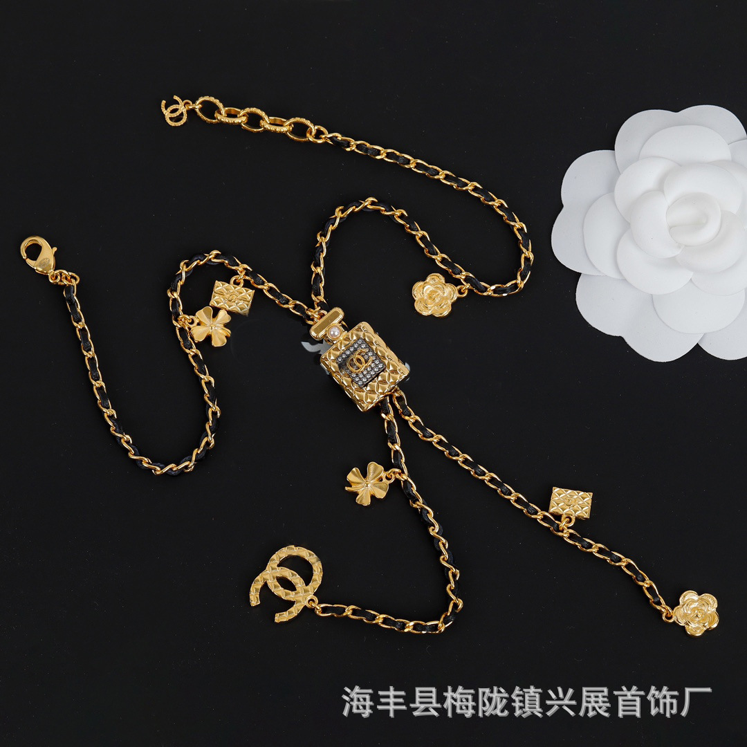 小香风双C双层镶钻小瓶子山茶花项链香奶奶经典双C流苏欧美式颈链