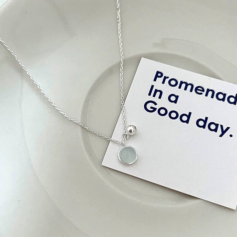 S925纯银韩版简约猫眼石项链女个性轻奢几何圆形锁骨链气质项饰品