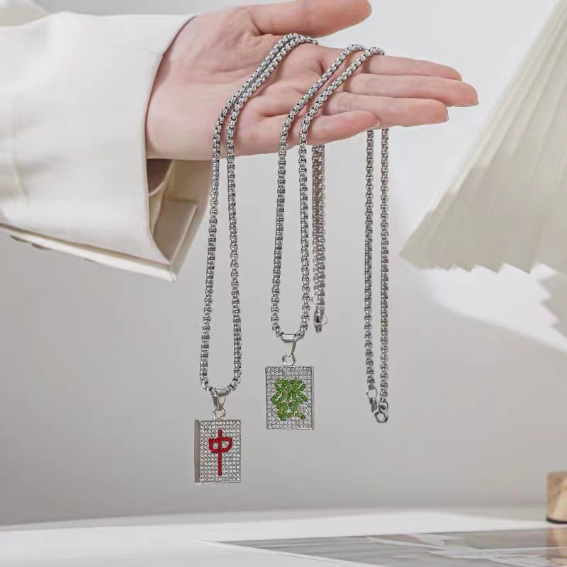 新款创意国潮嘻哈麻将满钻红中发字项链男女个性街头百搭长款项链