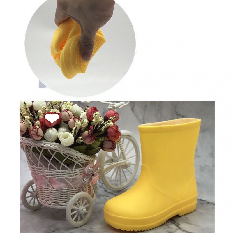 儿童纯色雨鞋PVC一体成型柔软男女童雨鞋简约小学生短筒防滑水鞋