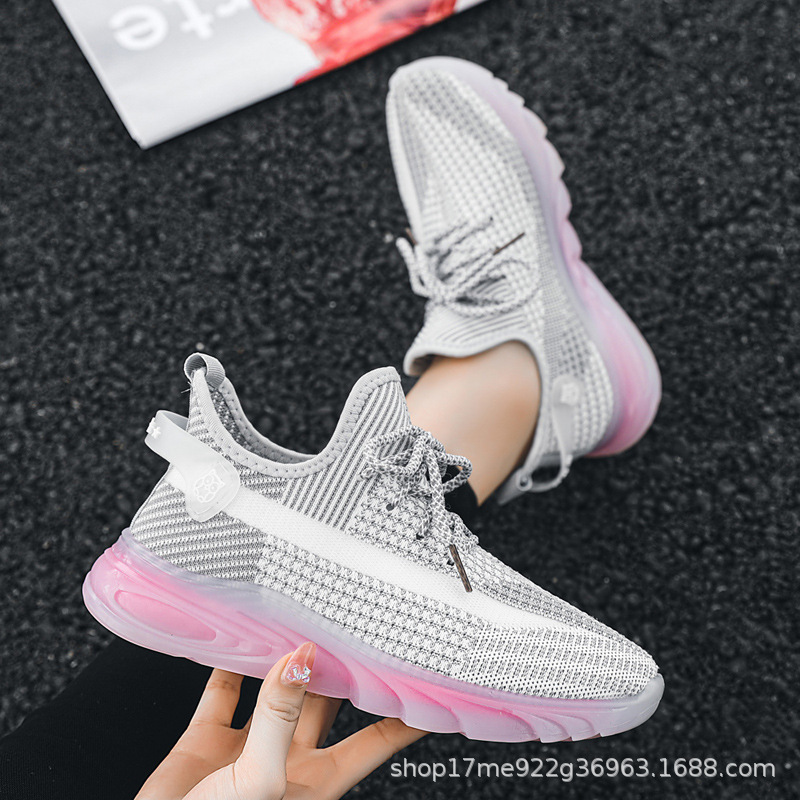 2022跨境电商夏季女士休闲果冻底透气旅游鞋飞织网面跑步鞋