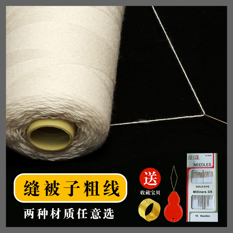 牛仔衣裤子老式纯棉缝被子线大卷结实203 黑白红色粗纯棉缝纫机线