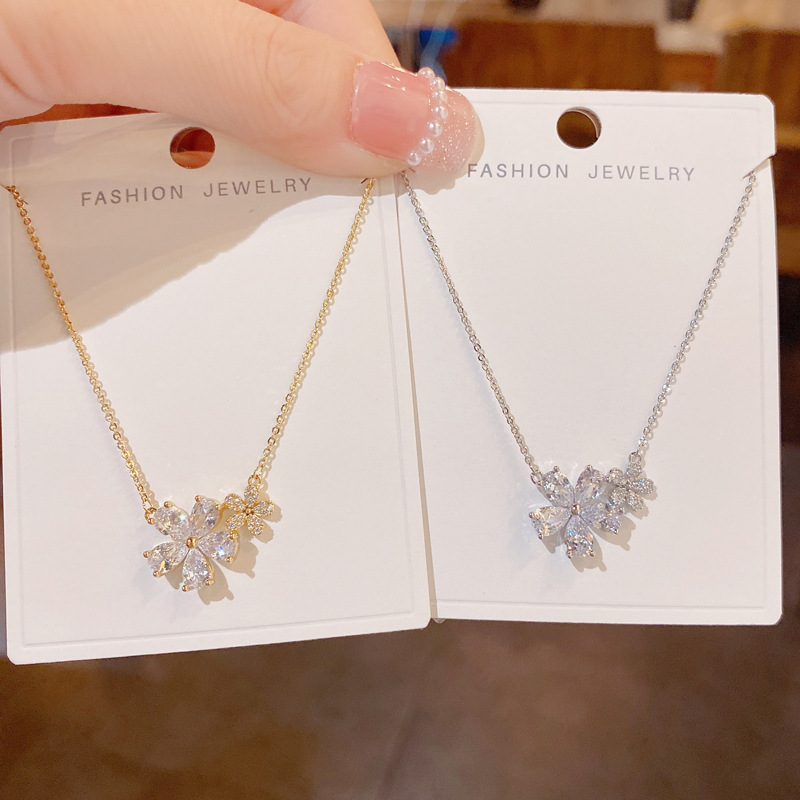 韩版网红闺蜜百搭时尚镶钻双花朵项链女简约甜美森系ins风锁骨链