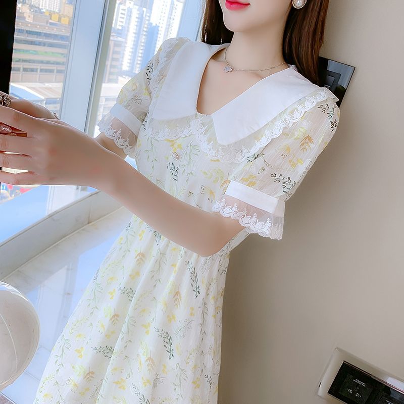 淑女碎花连衣裙女夏收腰显瘦气质仙女裙文艺雪纺长裙娃娃领公主裙