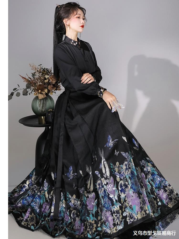 慕夏【步步生花】汉服女明制汉元素国风日常立领衬衫螺钿马面裙夏