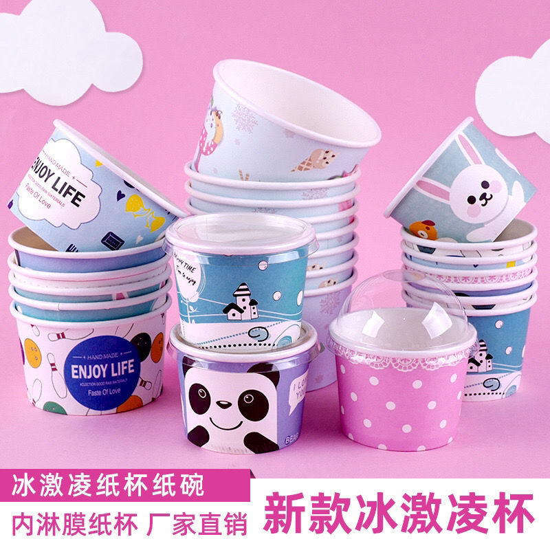 冰淇淋碗一次性纸杯蛋糕杯激凌卡通酸奶雪糕布丁打包盒可配盖厂家