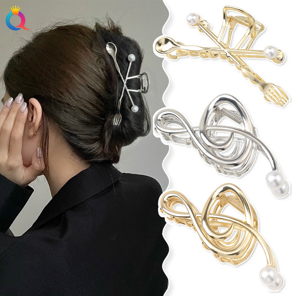 奇阅音符发夹盘发甜美鲨鱼夹发卡高级感发抓珍珠发饰金属抓夹批发