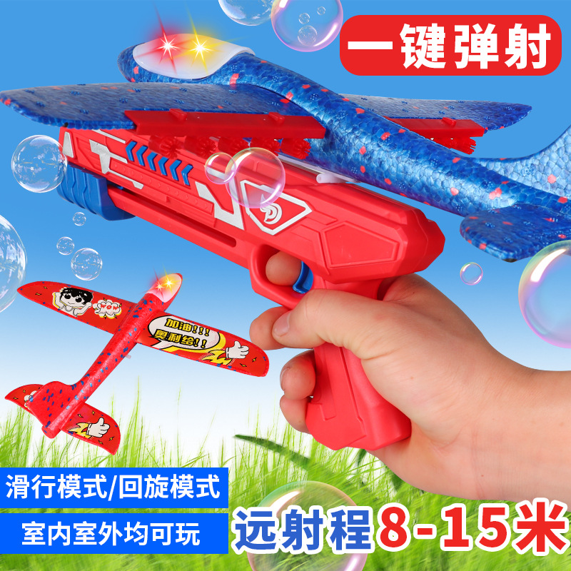 抖音热卖玩具手枪弹射泡泡飞机滑翔儿童礼物多功能网红泡泡机批发