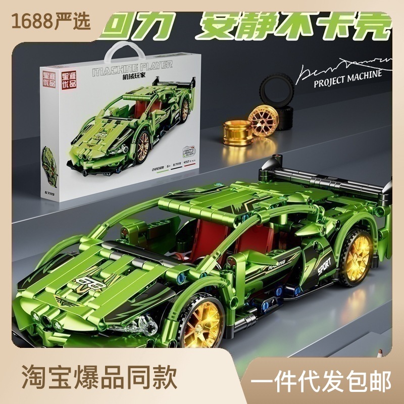 跨境爆品赛车益智高难度儿童男孩子回力车科技件跑车拼装积木玩具
