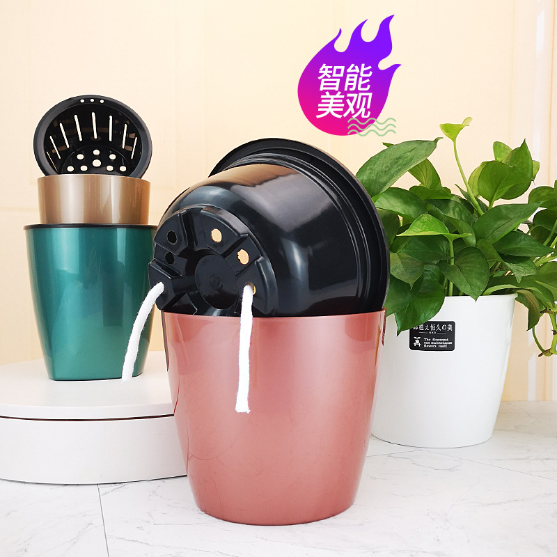 ins树脂花盆北欧简约塑料多肉吊篮绿萝可储水培懒人自动吸水花盆