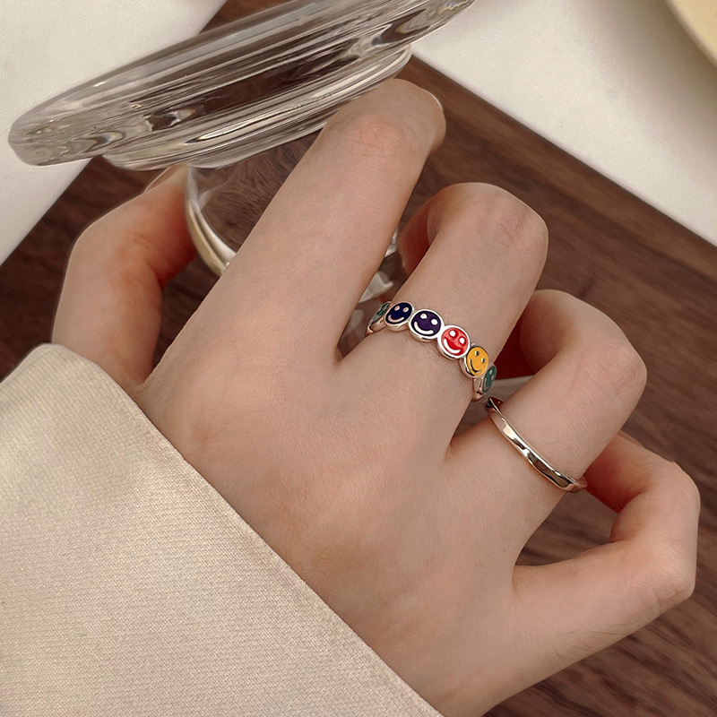 彩色笑脸戒指设计小众女新款潮冷淡风高级感开口指环2022时尚个性