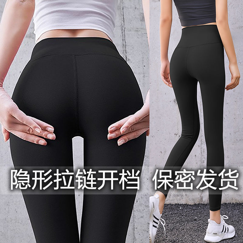 瑜伽紧身裤女开档户外免脱打底裤隐形拉链外穿约会弹力高腰紧身