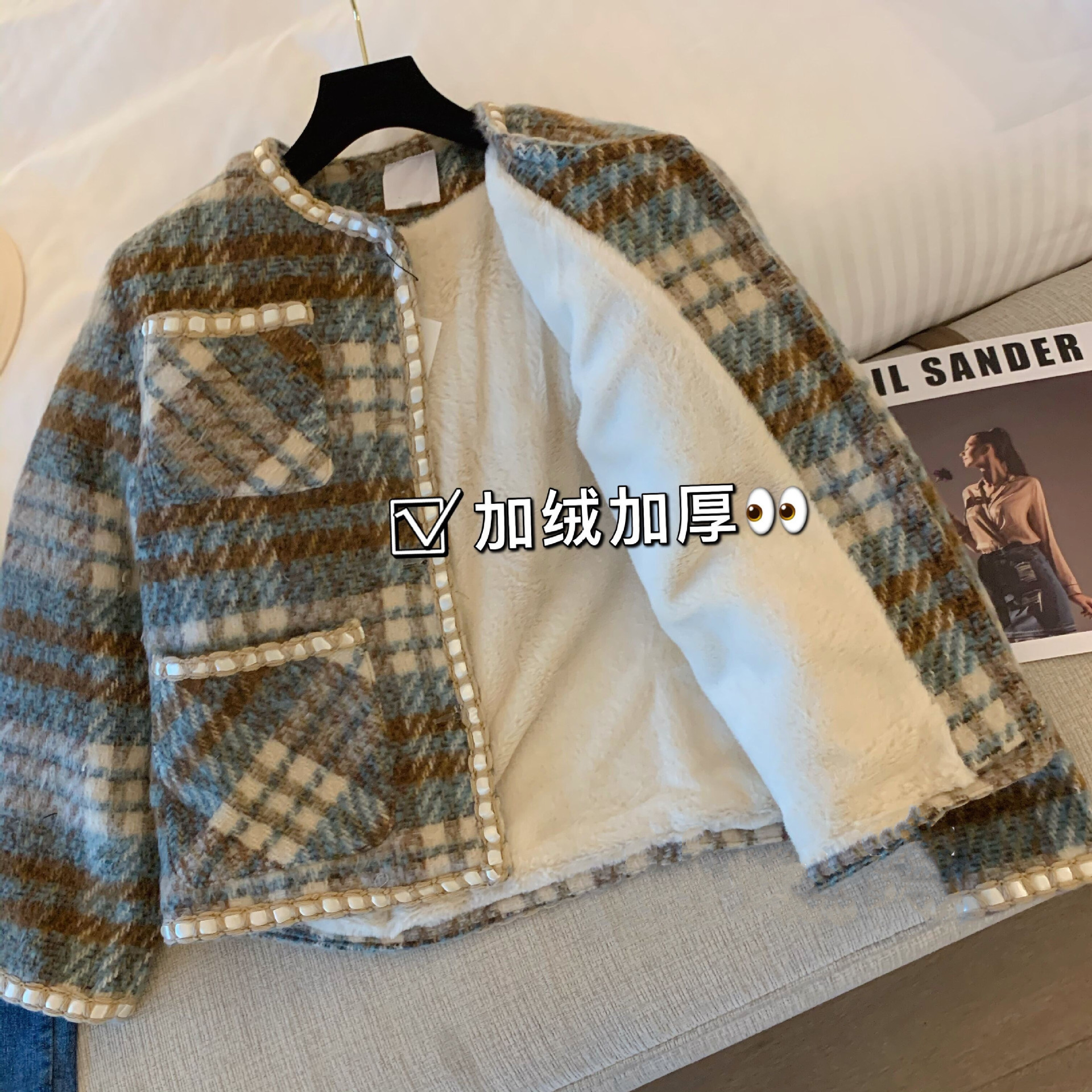 真香款~格纹小香风外套女2022秋冬新款法式复古宽松毛呢厚短上衣