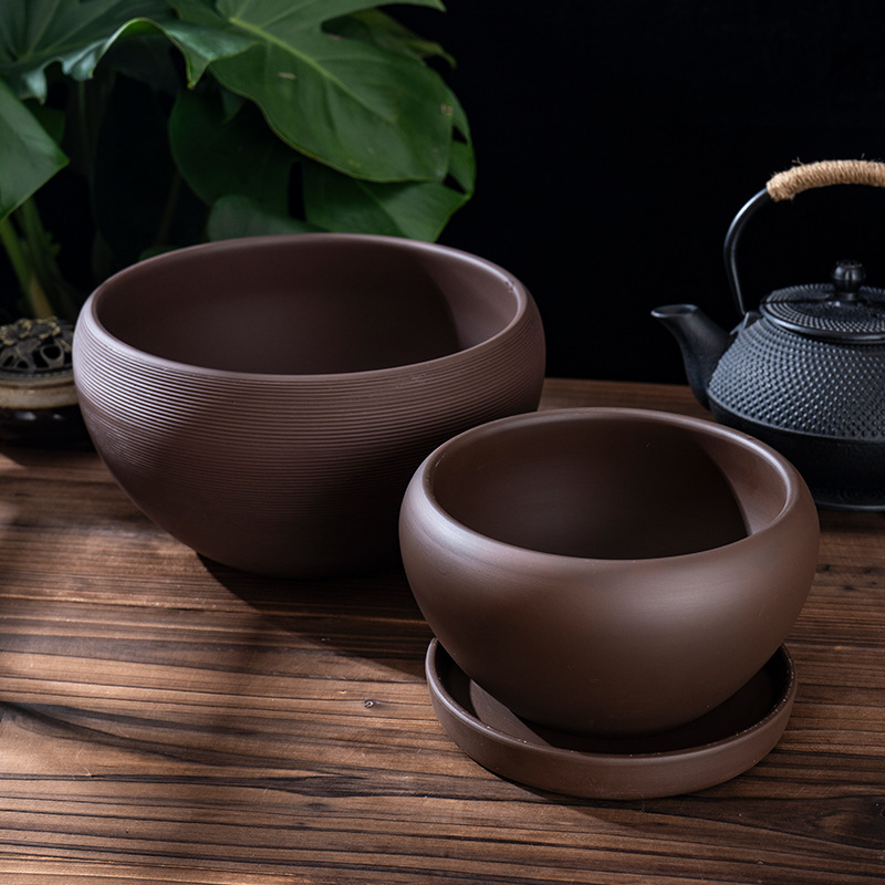 雅缘紫砂水培花盆陶瓷碗莲特大号多肉盆栽绿箩植物睡莲铜钱草托盘