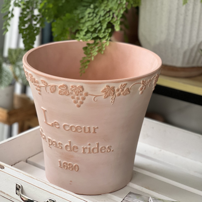 出口浮雕欧式葡萄法文红陶花盆加大容量透气透水阳台花园种植盆