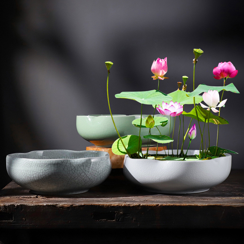 碗莲一叶莲荷花铜钱草水培花盆陶瓷创意水仙花植物无孔专用大口径