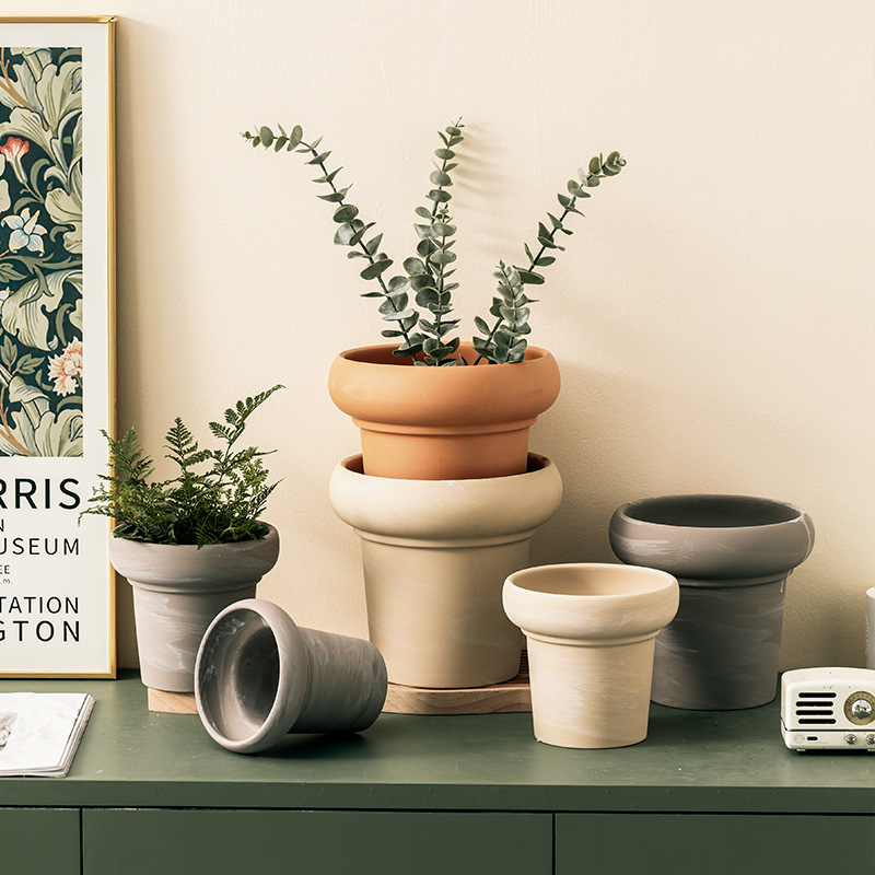 北欧简约兰花盆带托盘鲜花绿萝多肉蕨类盆栽透气红陶室内阳台盆器
