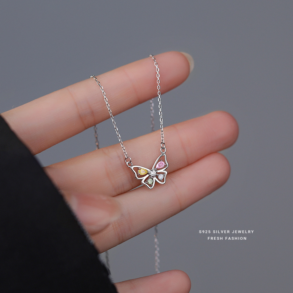 s925纯银幻彩冰花石蝴蝶项链仙气甜美可爱小众设计气质锁骨链批发