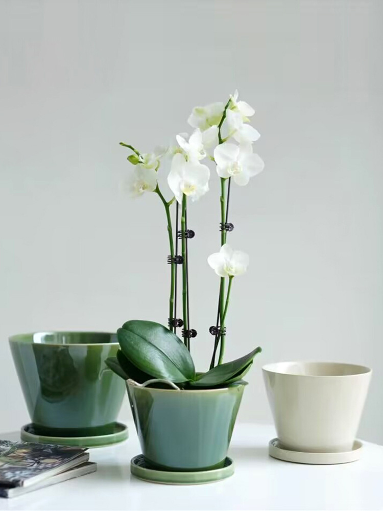 日式感陶瓷花盆北欧轻奢釉面兰花陶盆蝴蝶兰专用套盆带托盘