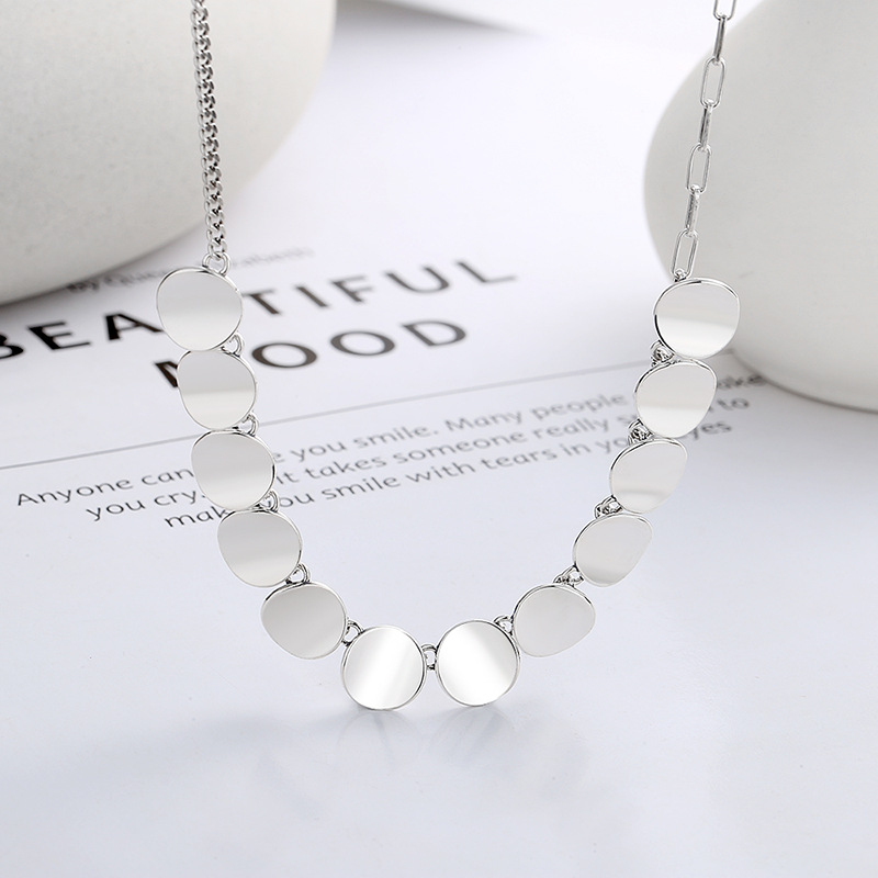 云潮轩S925纯银韩版创意个性简约光面圆牌拼接几何小众百搭项链