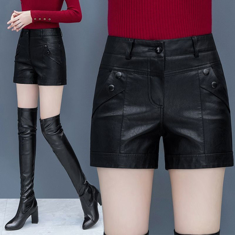 皮短裤女早春新款2023打底PU皮裤高腰修身宽松显瘦大码外穿靴裤子