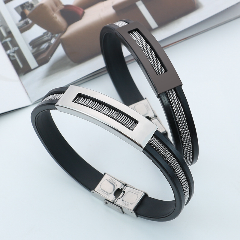 新款欧美个性男士手镯创意镂空不锈钢电镀硅胶钛钢男士手链批发