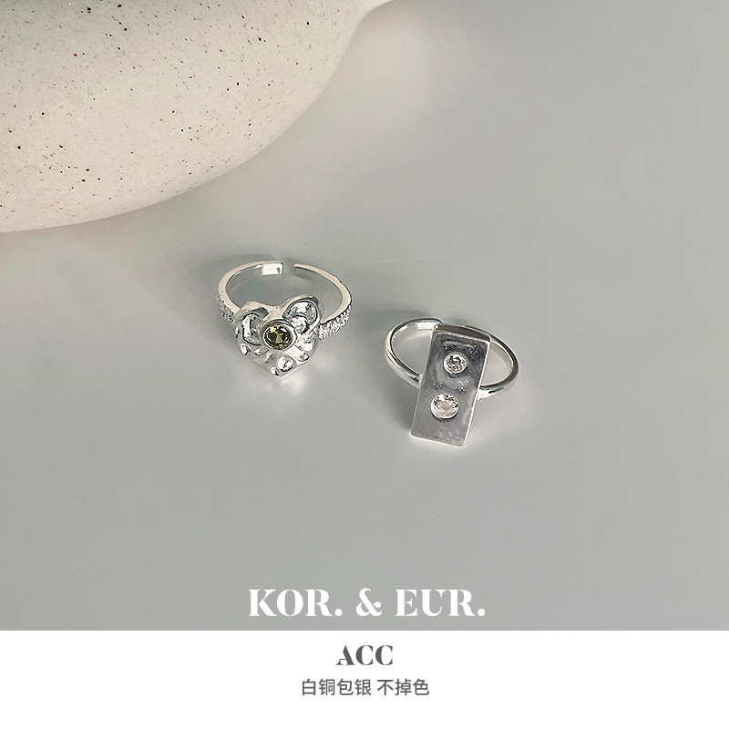韩国锆石简约几何个性指环女ins网红时尚925银戒指不掉色小众批发