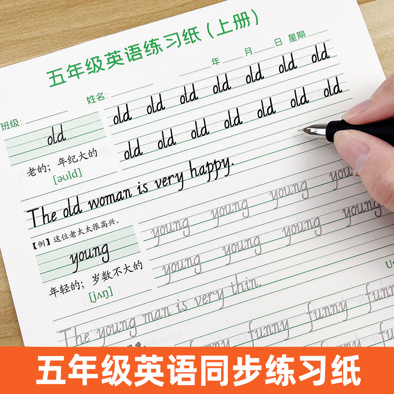 新版5五年级上下册英语同步字帖人教版pep课本教材单词描红练