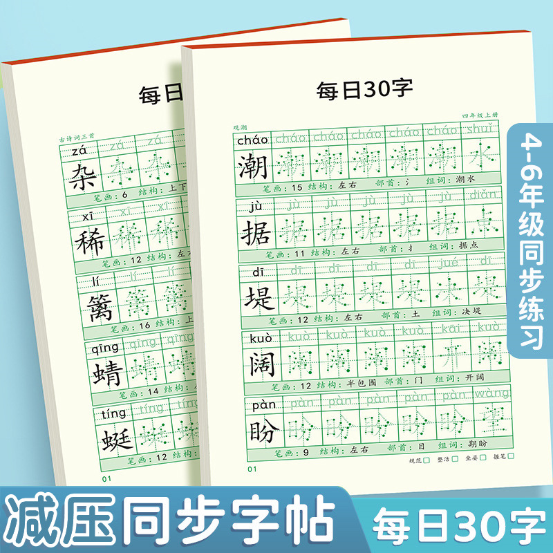 四五六年级上册下册语文同步点阵练字帖每日30字人教版生字组词拼