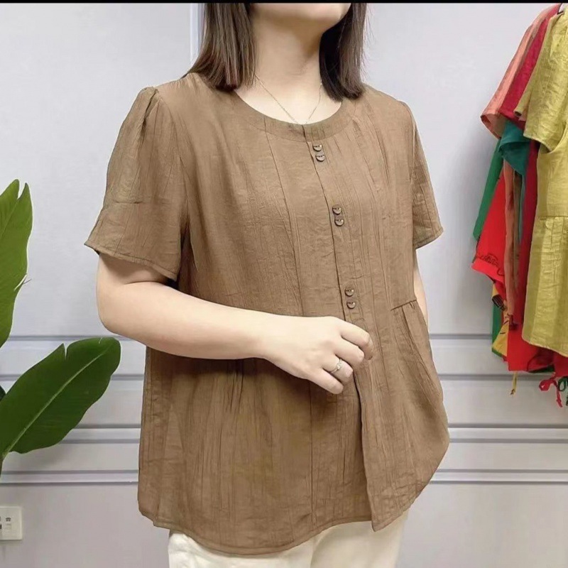 夏季新款短袖衬衫女洋气时尚宽松显瘦遮肚子小衫妈妈夏装衬衣上衣